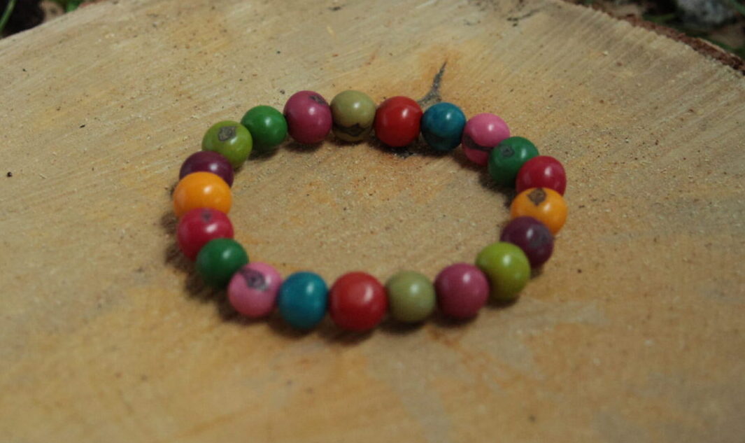 Armband „Azaipu“ aus Azai Beeren mit elastischem Armband – in verschiedenen Farben. Der Schmuck versprüht kolumbianische Lebensfreude. Ein absoluter Eyecatcher.